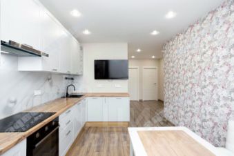• Фактически 1-комнатная квартира — студия правильной формы, удобна для меблировки, кухня зонирована стеной.