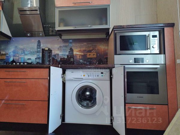 В стоимость квартиры входит встроенная кухня со всей представленной на фото еще досанкционной техникой: холодильник TOSHIBA, стиральная машина ZANUSSI, варочная панель и духовой шкаф BOSH, свч-печь SUPRA, вытяжка SHINDO, а также стеклянный круглый стол со стульями.