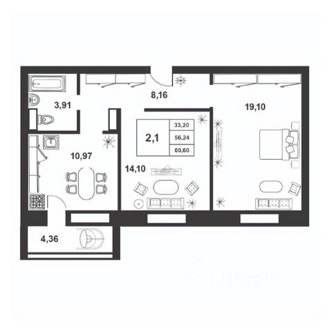 Продаётся 2-комнатная квартира в строящемся доме (Королёва, 22к2 (Позиция 59)), срок сдачи: IV-кв. 2025, общей площадью 56.04 кв.м., на 1 этаже. Расположение, транспортная доступность Жилой комплекс "Ивушки" занимает территорию 58 га на окраине Великого Новгорода, в молодом и перспективном Деревяницком микрорайоне. По границе проходят улицы Державина и Большая Московская, где расположены остановки автобусов, следующих в исторический центр и ближайшие районы, до автостанции и железнодорожного вокзала. За три минуты можно выехать на Колмовский мост через Волхов, а за пять минут - на новый Деревяницкий мост, до которого будет построена новая дорога из ЖК "Ивушки". В перспективе намечено продлить Большую Московскую улицу, что ускорит движение в центр города. Расстояние от комплекса до Новгородского Кремля, Кремлевского парка и здания Правительства области - менее 5 км. Инфраструктура В жилом комплексе построена школа 36 им. Державина, планируется открытие детского сада и детского автогородка, отдела пенсионного фонда, спортивного центра и православной церкви. На первых этажах выделены коммерческие помещения, где будут работать магазины, бытовые службы, фитнес-клубы и другие объекты. В одном из домов работает супермаркет "Верный". Рядом с комплексом расположены: детская и взрослая клинические больницы, детский сад, центр развития ребенка, тренажерный зал, несколько продуктовых магазинов, гипермаркет "Магнит" и торговый центр "Восточный". Надежность застройщика Масштабный проект комплексной застройки "Ивушки" реализует ЗАО "Проектстрой", созданное в Великом Новгороде в 2000 году на базе "СУ-247" и Новгородского домостроительного комбината. Одним из учредителей предприятия стал институт "Новгородгражданпроект", который занимается проектированием жилых комплексов застройщика. Компания специализируется на строительстве панельных и кирпичных домов и в 2017 году заняла 1-е место в Новгородской области по объемам ввода жилья. На строительство панельного дома на 72 квартиры от фундамента до ввода в эксплуатацию уходит девять месяцев, кирпичный дом на 50 квартир строится за год. ЗАО "Проектстрой" занимается производством стеновых трехслойных панелей (в качестве внутреннего слоя утеплителя используется минеральная вата), выпуском бетона, железобетонных изделий, раствора и других стройматериалов, а также оконных и дверных блоков. Компания владеет автопарком и спецтехникой для строительных работ. В качестве оплаты за квартиры принимается материнский капитал, предоставляются скидки при единовременной оплате и беспроцентная рассрочка с ежемесячными платежами и первоначальным взносом от 20% для 3-4-комнатных, до 50% - для однокомнатных квартир. Банки-партнеры предоставляют ипотечные кредиты. Архитектура Проект комплексного освоения территории 58 га предполагает строительство 51-го дома: девятиэтажных панельных и 12-этажных кирпичных корпусов по технологии КУБ 2.5. Для продолжения застройки девелопером приобретен также и соседний земельный участок площадью Купить 2-комнатную квартиру до 7 млн. рублей в Новгородской области.