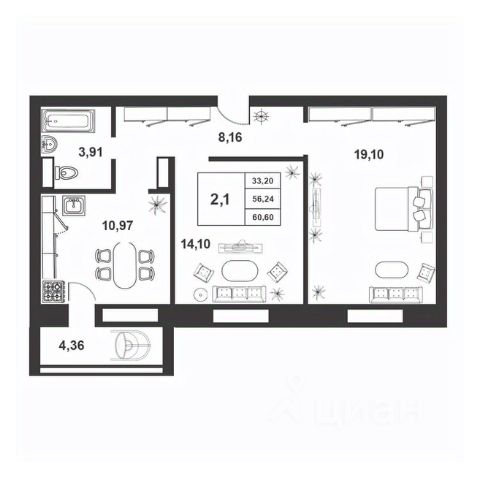 Продаётся 2-комнатная квартира в строящемся доме (Королёва, 22к2 (Позиция 59)), срок сдачи: IV-кв. 2025, общей площадью 56.04 кв.м., на 8 этаже. Расположение, транспортная доступность
