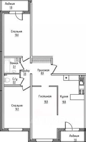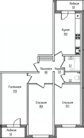 Продаётся 3-комнатная квартира в строящемся доме (Позиция 3), срок сдачи: II-кв. 2027, общей площадью 95.8 кв.м., на 6 этаже.