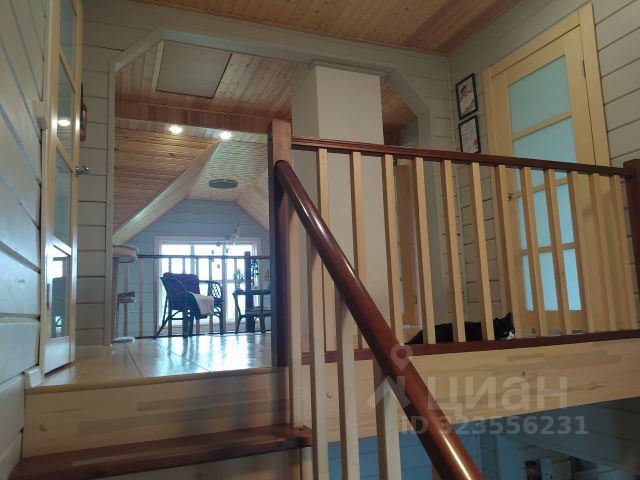 Стены всех помещений 1-го этажа обшиты вагонкой. С 1-го этажа на мансарду ведет винтовая лестница, состоящая из металлического каркаса и деревянных ступеней и перил).