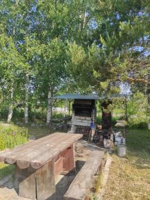 Бревенчатая баня площадью 16,4м.кв. В бане установлена дровяная печь с баком для нагрева воды. Баня расположена в непосредственной близости от домашнего пруда, расположенного на участке.