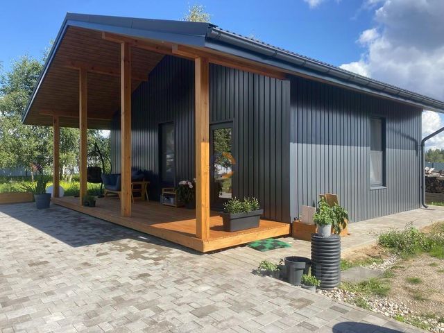 - Дровник (размер 3,5 x 3,0м): примыкает к гаражу, стены - деревянный каркас, обшитый вагонкой, крыша деревянная, покрытая ондулином.