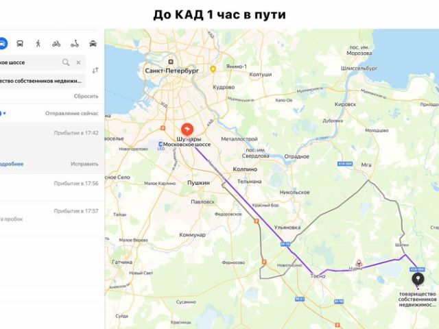 До Спб 1:00 час езды, на электричке 1:20 час. До жд 15 мин пешком. Автобусная остановка в две стороны Тосна и Любань каждые 15 мин, до остановки 150 метров.
