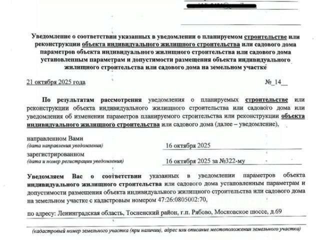 В подарок идет проект будущего дома, подано уведомление, и получено решение о соответствии планируемого жилого объекта.