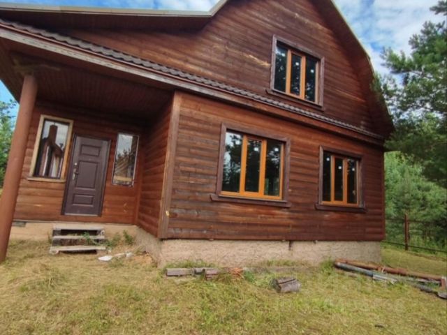 В бревенчатом доме, площадью 190 кв. метров, состоящем из 2х этажей, расположено 5 комнат, с санузлом на каждом этаже. В доме выполнен дизайнерский ремонт, эксклюзивная деревянная мебель, имеется видовая терраса, печь. Из окон дома открываются виды на озеро и монастырь.