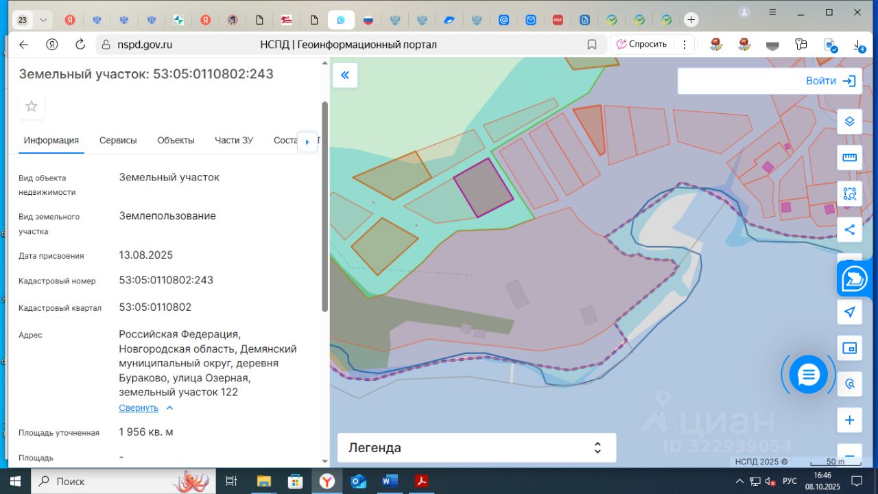 Земельный участок площадью 1956 кв.м., с кадастровым номером 53:05:0110802:243, по адресу: Российская Федерация, Новгородская область, Демянский муниципальный округ, деревня Бураково, улица Озерная, земельный участок 122, расположенный на землях населенных пунктов, в территориальной зоне Ж5, из земель, находящихся в государственной собственности, с разрешенным использованием: для ведения личного подсобного хозяйства (приусадебный земельный участок)