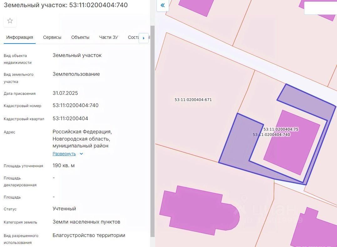 Лот 5 - земельный участок из земель населённых пунктов с кадастровым номером 53:11:0200404:740, площадью 190 кв.м, расположенный по адресу: Новгородский муниципальный район, Бронницкое сельское поселение, деревня Наволок, земельный участок 30б/1, разрешенное использование: Благоустройство территории, аренда сроком на 10 лет