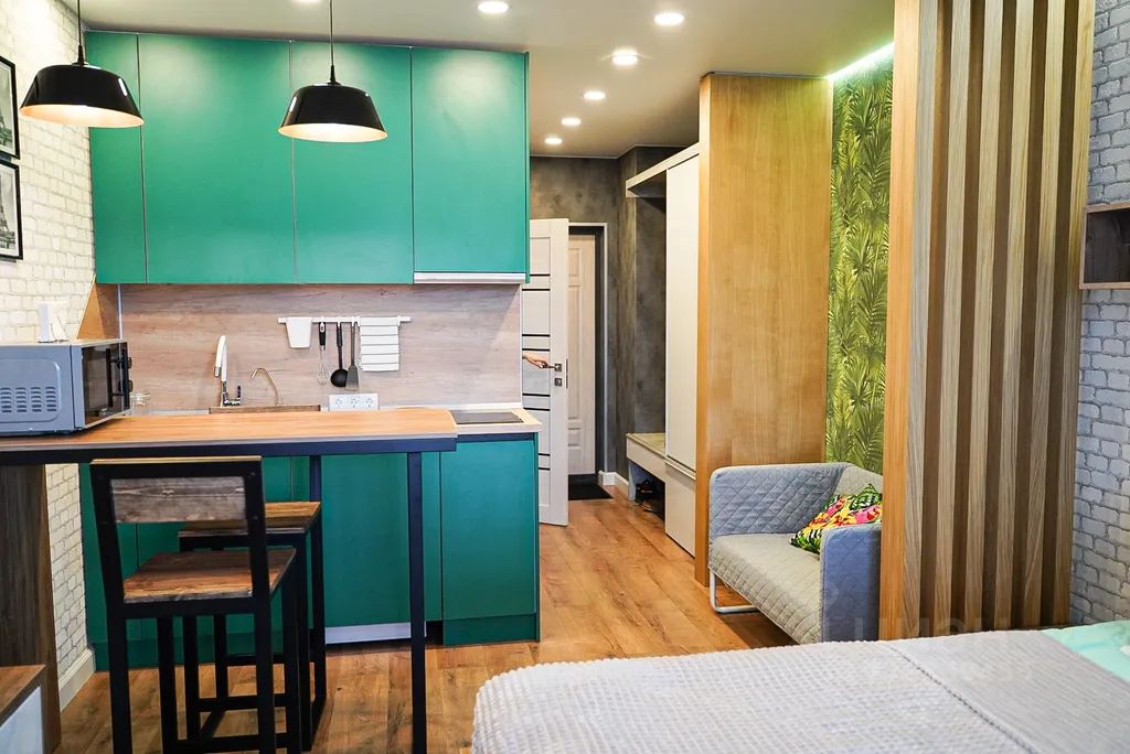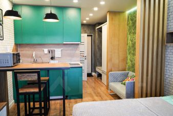 Квартира-студия для уютного проживания в эко-стиле расположена в городе Великий Новгород, один из древнейших русских городов, находящийся на берегу реки Волхов с видом на город.