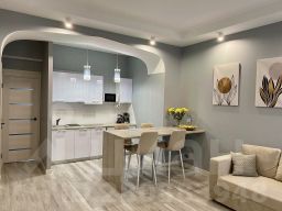 Апартаменты оснащены необходимым для пребывания. В распоряжении гостей: двуспальная кровать с ортопедическим матрасом, диван-кровать, сплит-система, водонагреватель, телевизор с smart TV.