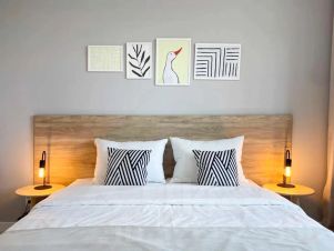 - Очень хорошие матрасы, качественный топпер. Кровати со сцепными механизмами, топпер позволяет абсолютно полностью нивелировать место сцепки, превращая кровати в единое комфортное спальное место размером 160х200 см. Штатно готовим квартиру именно так.