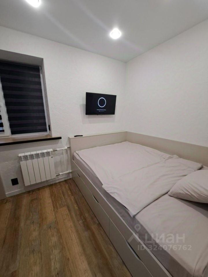 Площадь квартиры 31 м, она разделена на 1 спальню с двуспальной кроватью 140x200 и кухню-гостиную с диваном 120х200, комнаты раздельные, не смежные.