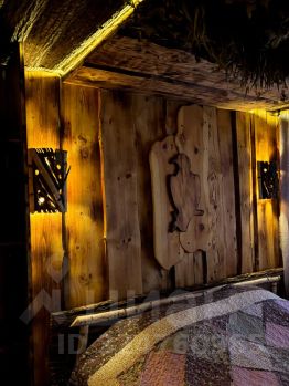 Большой уютный дом с настоящей печкой, которую можно затопить, на которой можно спать. Есть уютная спальня с панорамным окном, постельное и полотенца. Душевая и туалет. Кухня со всей необходимой техникой: холодильник, чайник, микроволновка, кондиционер, посуда, кухонный стол. Своя терраса у дома.