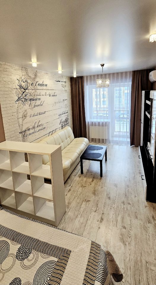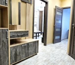 Квартира полностью укомплектована мебелью (в т.ч. двуспальная кровать с ортопедическим матрасом Аскона, диван, гардеробная и т.д), техникой, два телевизора, в комнате телевизор 50 дюймов, а так же всеми кухонными и спальными принадлежностями. Для удобства гостей в комнате установлен кондиционер, а на кухне - трехступенчатый фильтр для очистки питьевой воды (Аквафор).
