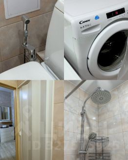 Большой совмещенный санузел 7 м² включает: унитаз с биде, душ с двойной системой (классический + тропический душ), стиральную машину.