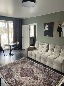 Удобства: 4 спальных места (диван + кровать), стиральная машина, духовка + микроволновка, кондиционер, фен, утюг, принадлежности для душа, полотенца, постельное белье, чай, кофе, перец, подсолнечное масло, Wi-Fi, парковка во дворе.
