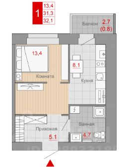 Площадь квартиры без учета балкона - 31,3кв.м.