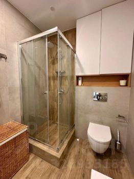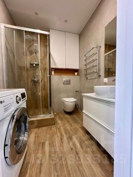 - Ванная комната 4,8 кв.м, отделана керамогранитом на полу и стенах, теплый пол, душевая кабина. Стиральная машина.