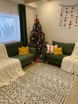 Два огромных телевизора 65 дюймов в гостиной и на мансардном детском этаже.