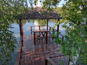 На территории: детская площадка, батут, качели , панорамные качели , рыбалка ( снасти предоставляем), костровые зоны до 20 мест, аренда сапбордов, электролодочек, плавающих плотов .Банкетный зал на 42 места, также есть комнаты с 2-4 местными номерами на втором этаже.