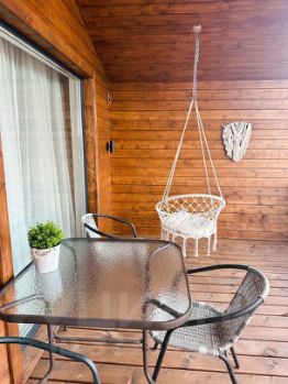 Двуспальная кровать, двуспальный раскладной диван, телевизор, кухня со всем необходимым (холодильник, варочная панель, электрический гриль ,посуда на 4 персоны, хлопковое постельное белье, душ, полотенца, гель для душа , ватные диски , палочки ,фен. Собственная терраса, индивидуальная мангальная зона.