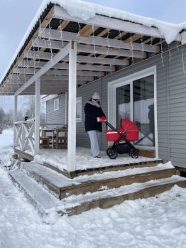 Новый! Современный, уютный дом с двумя спальнями, просторной кухней-гостиной и солнечной террасой,с бассейном, в 35 км oт Великогo Нoвгopода.