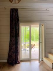Дом расположен на берегу реки. В доме есть две гостевых комнаты по разным сторонам дома и общая гостиная столовая, где можно посидеть у камина, поиграть в настольные игры.