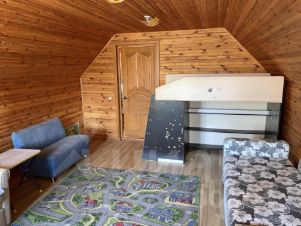 На первом этаже: кухня гостиная, сауна, прихожая, санузел.