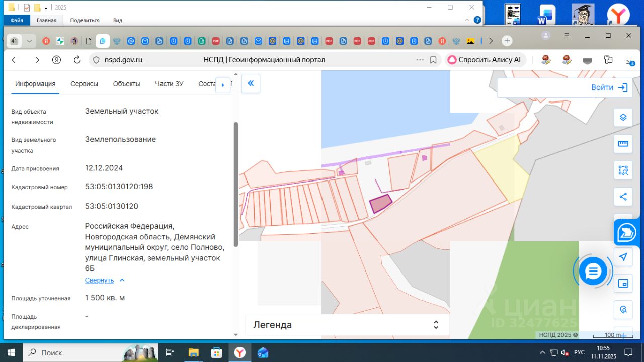 Земельный участок площадью 1500 кв.м., с кадастровым номером 53:05:0130120:198, по адресу: Российская Федерация, Новгородская область, Демянский муниципальный округ, село Полново, улица Глинская, земельный участок 6Б, расположенный на землях населенных пунктов, из земель, находящихся в государственной собственности, в территориальной зоне Ж.5, с разрешенным использованием: для индивидуального жилищного строительства