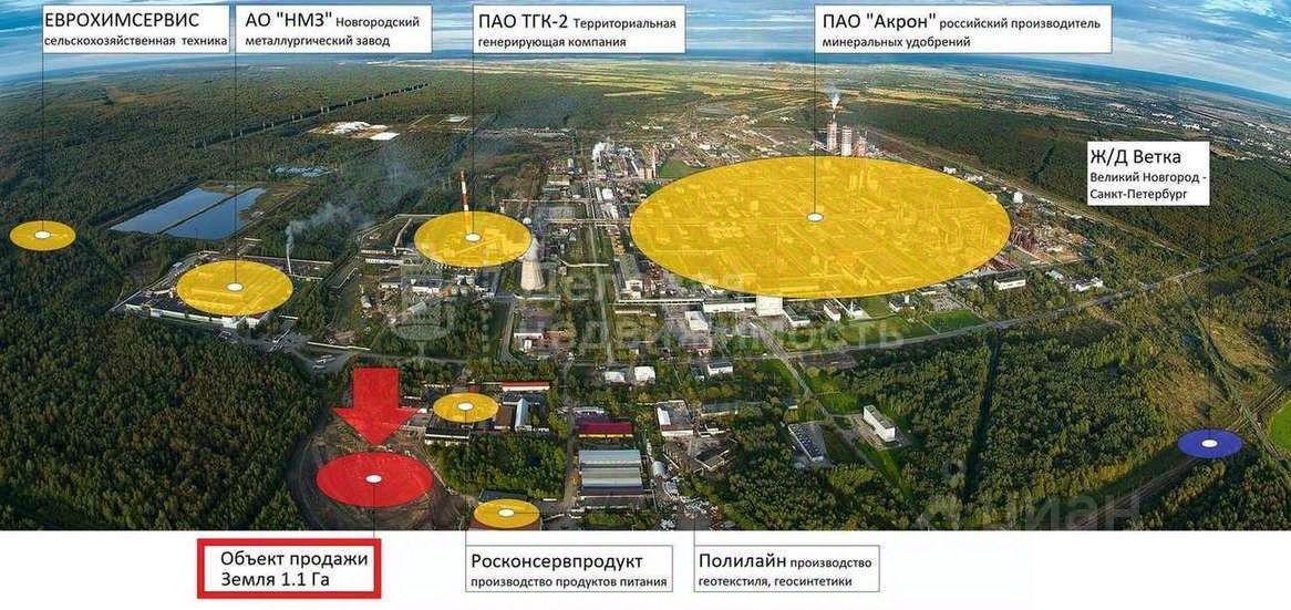 Продается земля на производственной площадке ОАО Акрон, 1,1 Га.