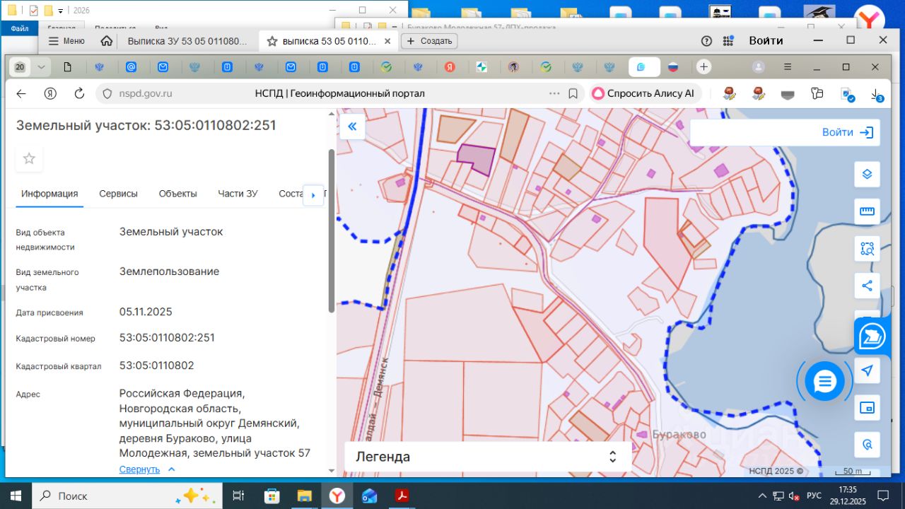 Земельный участок площадью 1645 кв.м., с кадастровым номером 53:05:0110802:251, по адресу: Российская Федерация, Новгородская область, муниципальный округ Демянский, деревня Бураково, улица Молодежная, земельный участок 57, расположенный на землях населенных пунктов, из земель, находящихся в государственной собственности, в территориальной зоне Ж.5, с разрешенным использованием: для ведения личного подсобного хозяйства (приусадебный земельный участок)