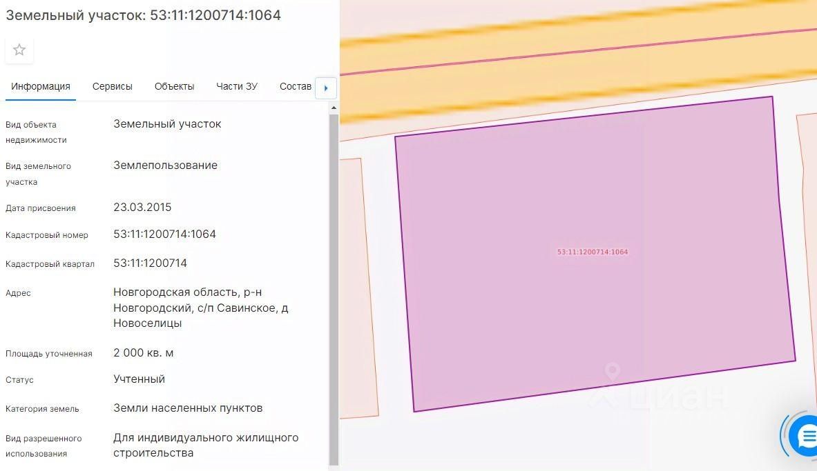 Земельный участок из земель населенных пунктов с кадастровым номером 53:11:1200714:1064, площадью 2000 кв.м., расположенный по адресу: Новгородский муниципальный район, Савинское сельское поселение, деревня Новоселицы, разрешенное использование: Для индивидуального жилищного строительства