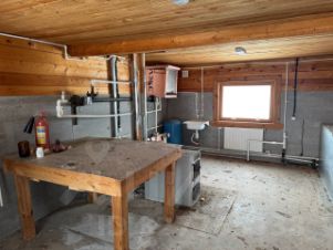• Административно-хозяйственный комплекс площадью 563м2. Комплекс включает в себя душевую зону, хранение спецодежды и раздевалка для рабочих, производственное-складские помещения. На втором этаже находятся спальные комнаты, кухня и с/у. Так же расположен гараж с ямой для легкового и грузового транспорта. И большой ангар для обслуживание и хранения техники.