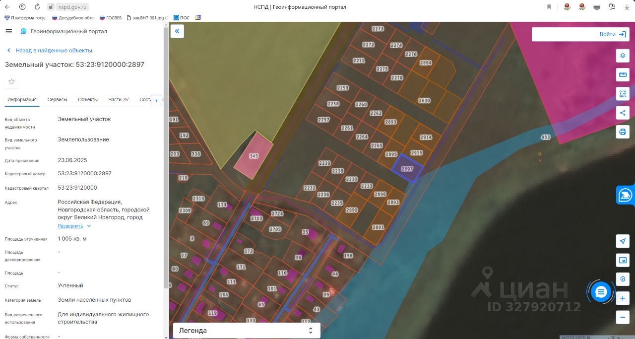 Земельный участок с кадастровым номером 53:23:9120000:2897, площадью 1005 кв.м. по адресу: Российская Федерация, Новгородская область, городской округ Великий Новгород, город Великий Новгород, улица Лётчика Журавлёва, земельный участок 12, с видом разрешенного использования - для индивидуального жилищного строительства