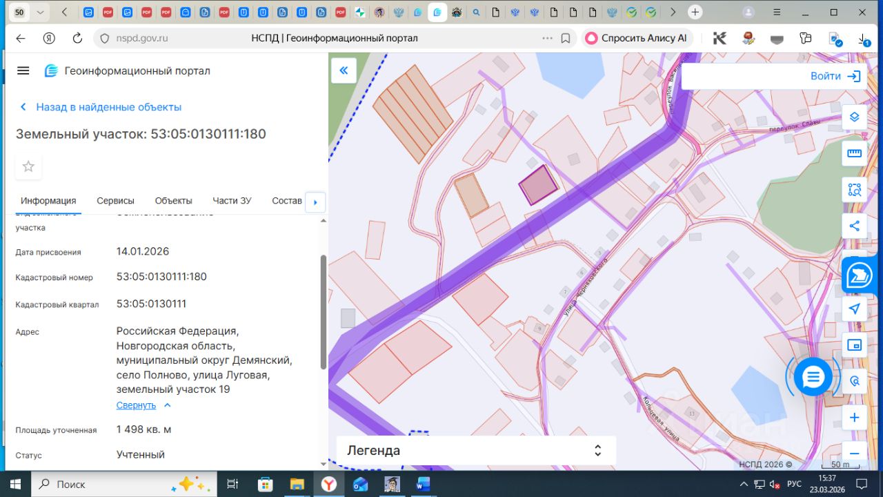Земельный участок площадью 1498 кв.м., с кадастровым номером 53:05:0130111:180, по адресу: Российская Федерация, Новгородская область, муниципальный округ Демянский, село Полново, улица Луговая, земельный участок 19, расположенный на землях населенных пунктов, из земель, находящихся в государственной собственности, в территориальной зоне Ж.5 - Иная зона жилой застройки, с видом разрешенного использования: для индивидуального жилищного строительства
