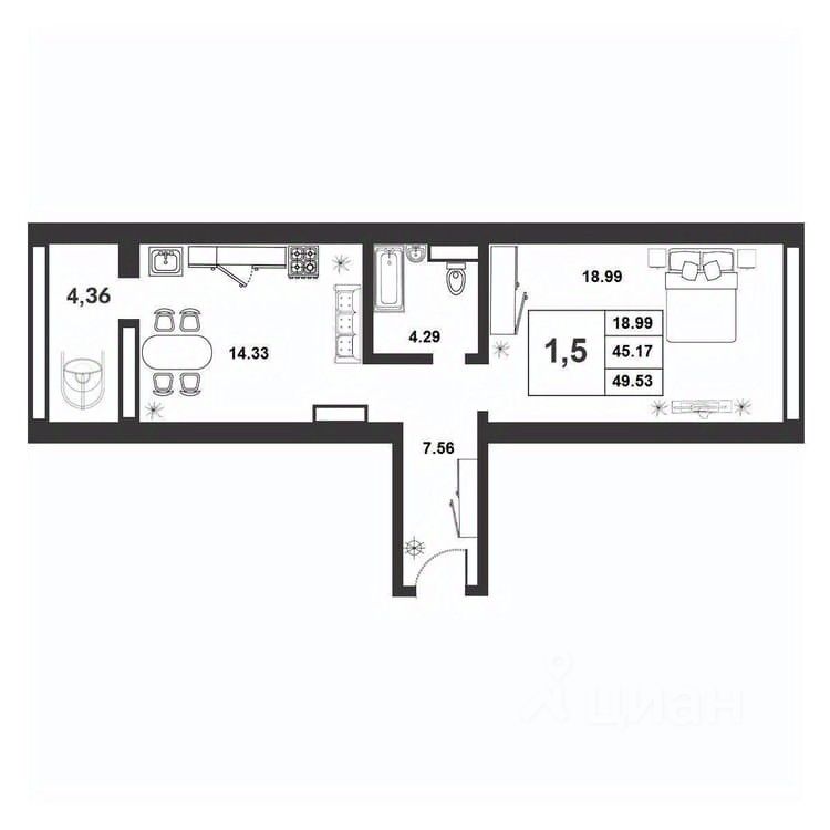 Продаётся 1-комнатная квартира в строящемся доме (Позиция 59), срок сдачи: IV-кв. 2025, общей площадью 45.17 кв.м., на 9 этаже. Расположение, транспортная доступность