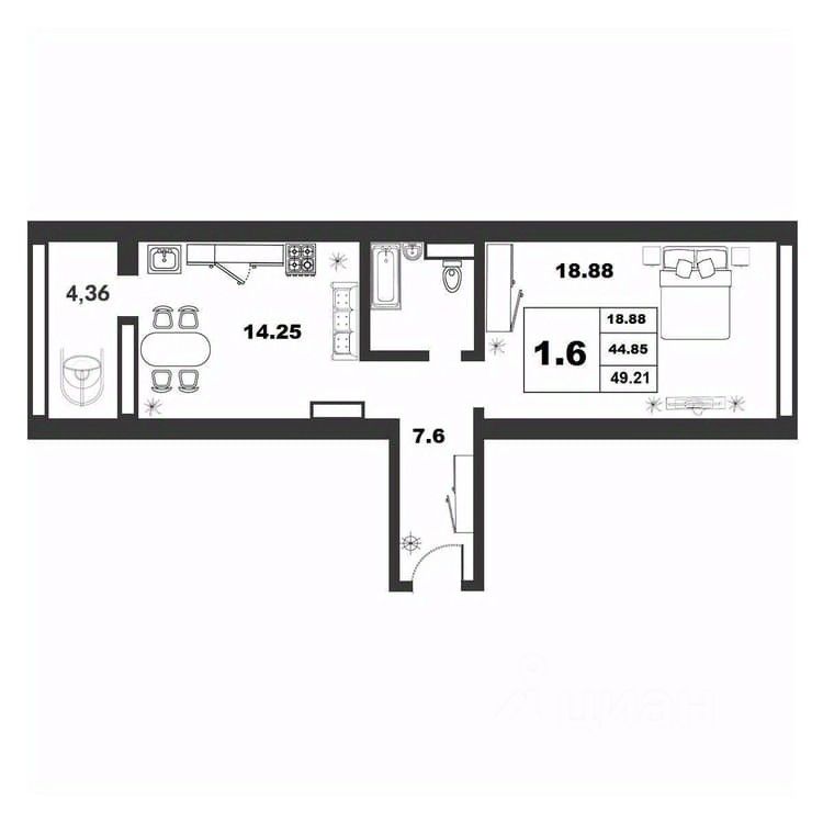 Продаётся 1-комнатная квартира в строящемся доме (Якова Павлова, 17 (Позиция 74)), срок сдачи: I-кв. 2026, общей площадью 44.81 кв.м., на 7 этаже. Расположение, транспортная доступность