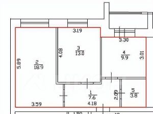 Комнаты: 31,9 кв. м (18,9 + 13 кв. м)