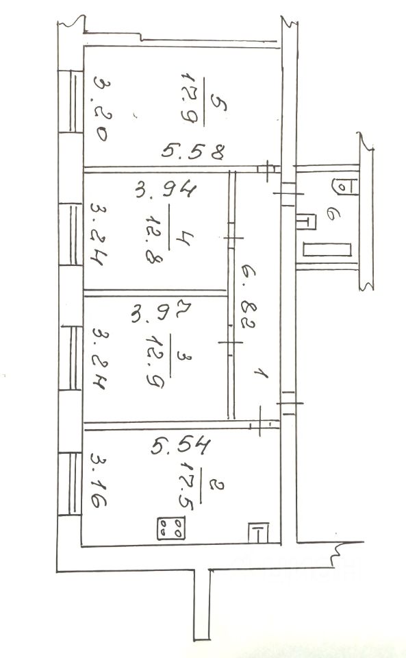 3 комн. квартира, ул. Московская д.24, 1/5кирп., 75,4 кв.м. общ. / 43,6 кв.м. жилая / 17,5 кв.м. кухня-столовая.