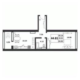 Продаётся 1-комнатная квартира в строящемся доме (Якова Павлова,15 (Позиция 60)), срок сдачи: II-кв. 2026, общей площадью 44.81 кв.м., на 8 этаже. Расположение, транспортная доступность