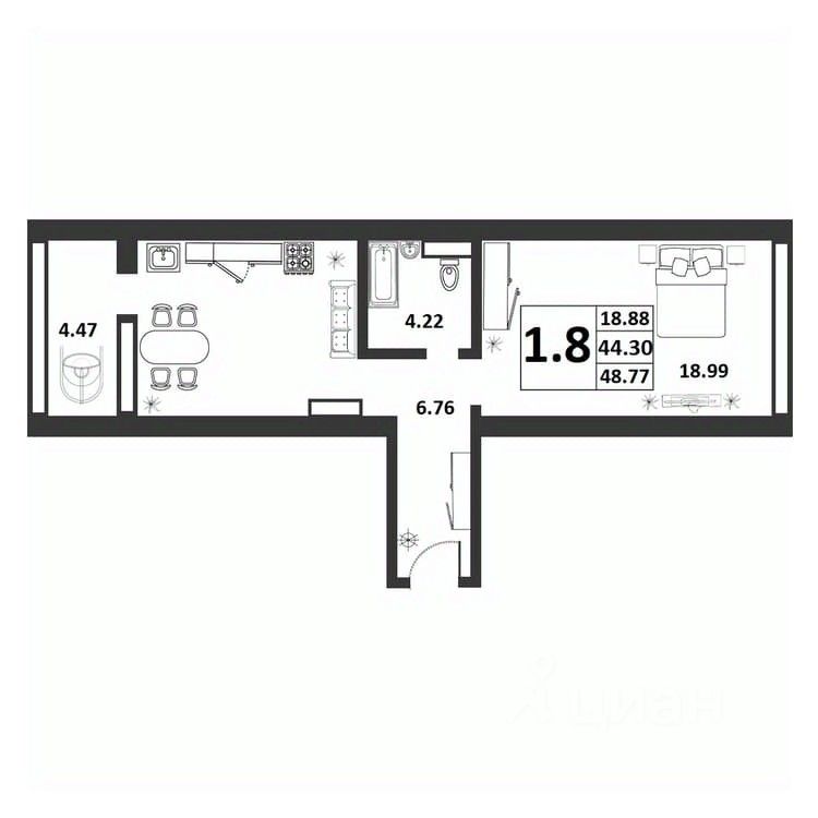 Продаётся 1-комнатная квартира в строящемся доме (Якова Павлова,15 (Позиция 60)), срок сдачи: II-кв. 2026, общей площадью 44.3 кв.м., на 4 этаже. Расположение, транспортная доступность