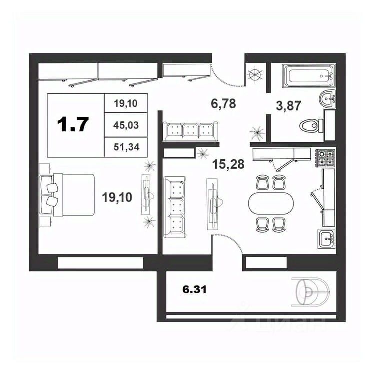 Продаётся 1-комнатная квартира в строящемся доме (Якова Павлова,15 (Позиция 60)), срок сдачи: II-кв. 2026, общей площадью 45.03 кв.м., на 2 этаже. Расположение, транспортная доступность