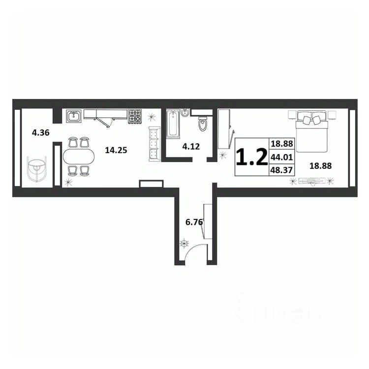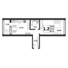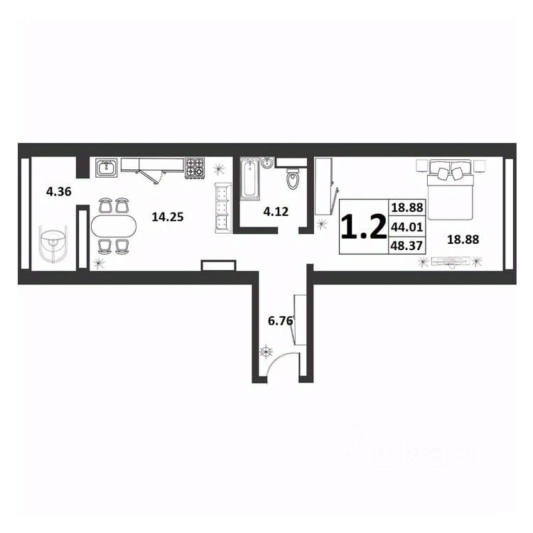 Продаётся 1-комнатная квартира в строящемся доме (Якова Павлова,15 (Позиция 60)), срок сдачи: II-кв. 2026, общей площадью 44.01 кв.м., на 6 этаже. Расположение, транспортная доступность