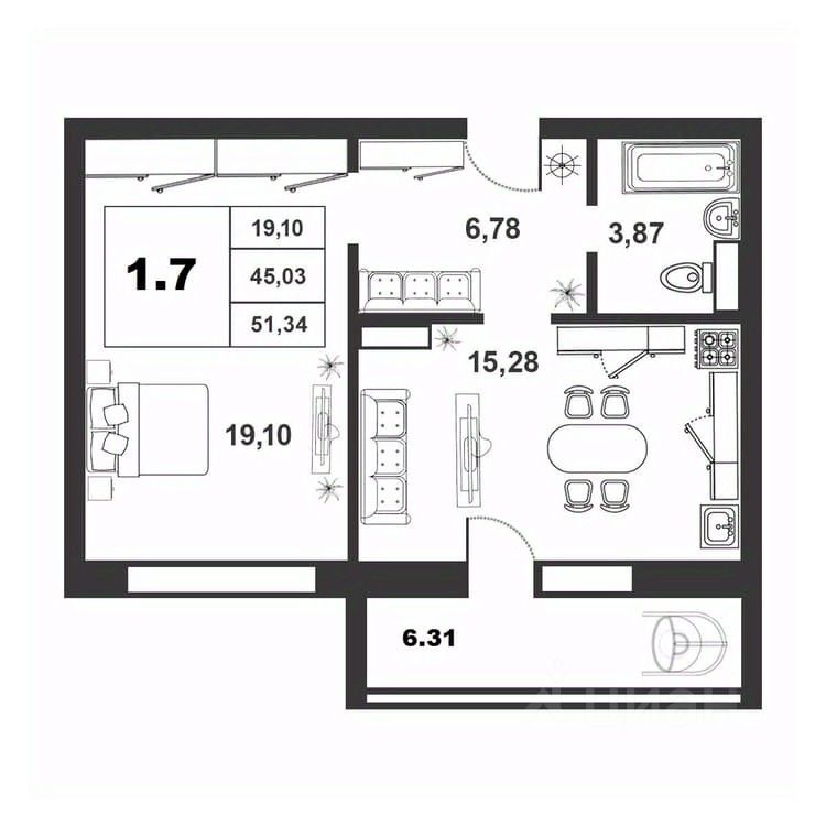 Продаётся 1-комнатная квартира в строящемся доме (Якова Павлова,15 (Позиция 60)), срок сдачи: II-кв. 2026, общей площадью 45.03 кв.м., на 2 этаже. Расположение, транспортная доступность