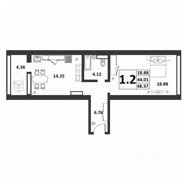 Продаётся 1-комнатная квартира в строящемся доме (Якова Павлова,15 (Позиция 60)), срок сдачи: II-кв. 2026, общей площадью 44.01 кв.м., на 1 этаже. Расположение, транспортная доступность