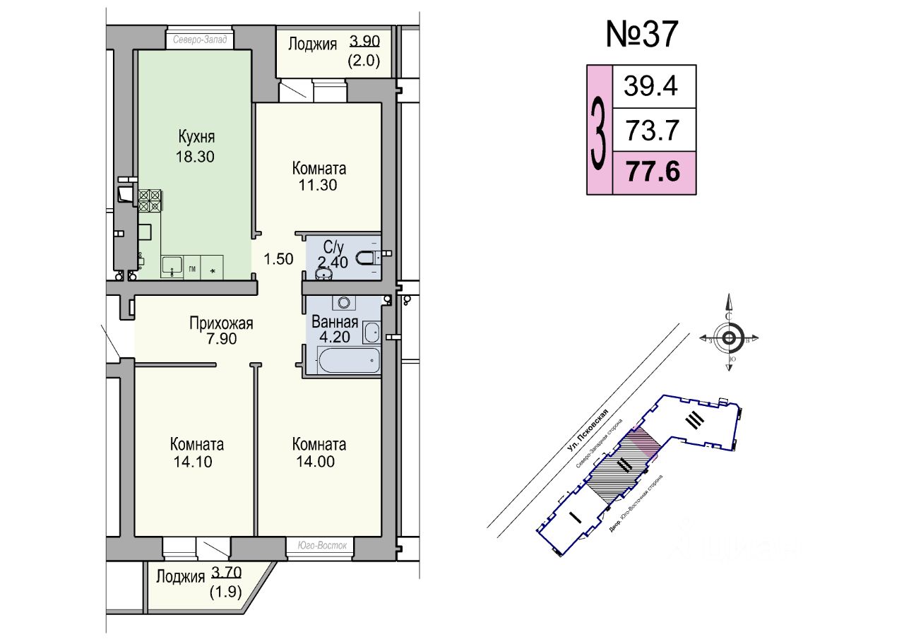 73,7 м²