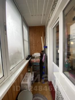 • Гостиная с выходом на остекленный балкон, обшитый сайдингом (окна выходят на парковку).