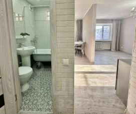 Главные преимущества: Современный ремонт "под ключ": Вся квартира полностью обновлена. Выполнена качественная чистовая отделка: поклеены свежие обои, уложен новый ламинат, санузел совмещенный и полностью облицован плиткой.