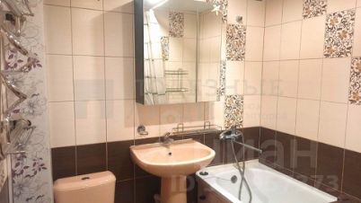 Санузел совмещенный и полностью оформлен плиткой. При своих небольших размерах в нем поместилось все необходимое (раковина, унитаз, полноценная ванная, новая стиральная машина Samsung ). Приятным дополнением будет и тот факт, что трубы заменены.